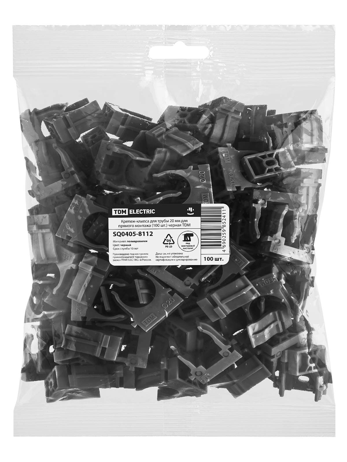 Крепеж-клипса для трубы 20 мм для прямого монтажа (100 шт.) черная TDM