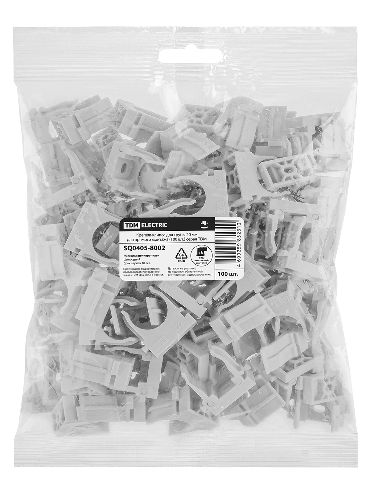 Крепеж-клипса для трубы 20 мм для прямого монтажа (100 шт.) серая TDM