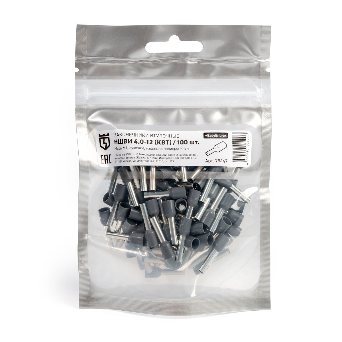 Оконцевание методом опрессовки гибких многопроволочных медных проводников сечением 4 мм². Трансформирует концы многожильных проводов в монолитные штифты. Монтаж одного провода