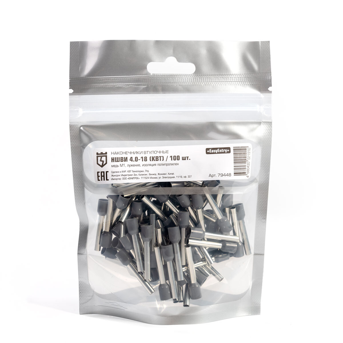 Оконцевание методом опрессовки гибких многопроволочных медных проводников сечением 4 мм². Трансформирует концы многожильных проводов в монолитные штифты. Монтаж одного провода