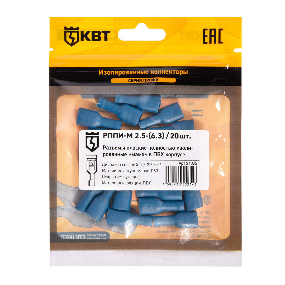 Разъем плоский РПИ-М(н) 2,5-(6,3) (20шт.) (КВТ)